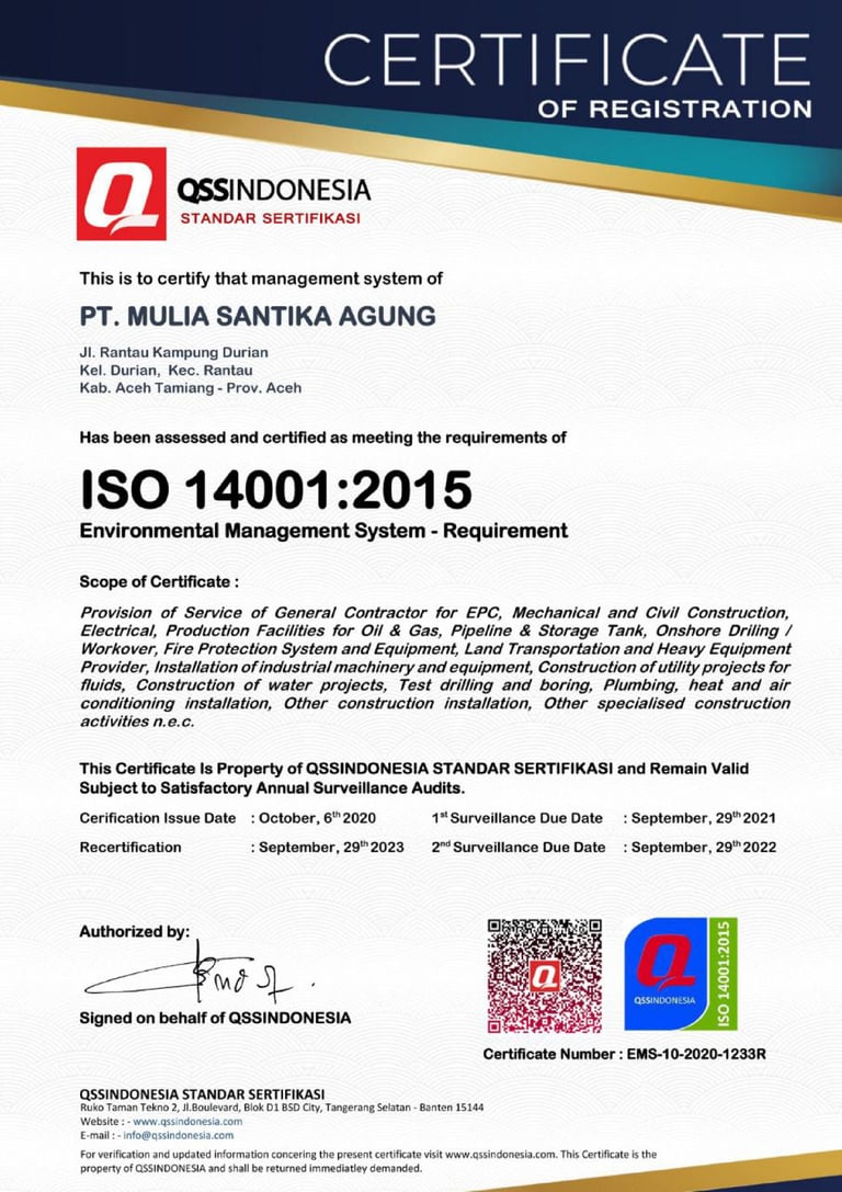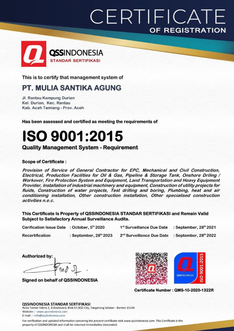 PT. Mulia Santika Agung adalah perusahaan General Contractor & Suppliers yang bergerak di bidang Overhaul & Procurement and Construction, as well as Civil Works in the Oil and Gas Industry.